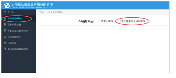 前往壹证通采电子招标平台官网https://yztc.ynsmartcert.cn
