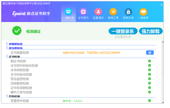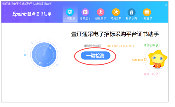 安装完成后打开【壹证通采检测工具】-【一键检测】